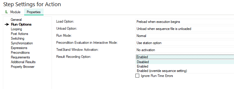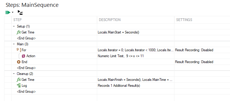 Disabling result logging for certain steps can help generate cleaner, more concise reports—and may also slightly reduce test time. While the performance gain is typically minimal, as reporting is handled by a parallel loop, it can still be beneficial in long-running sequences (e.g., tests exceeding one hour). In such cases, turning off result logging for non-critical steps can help reduce memory usage and improve overall efficiency.